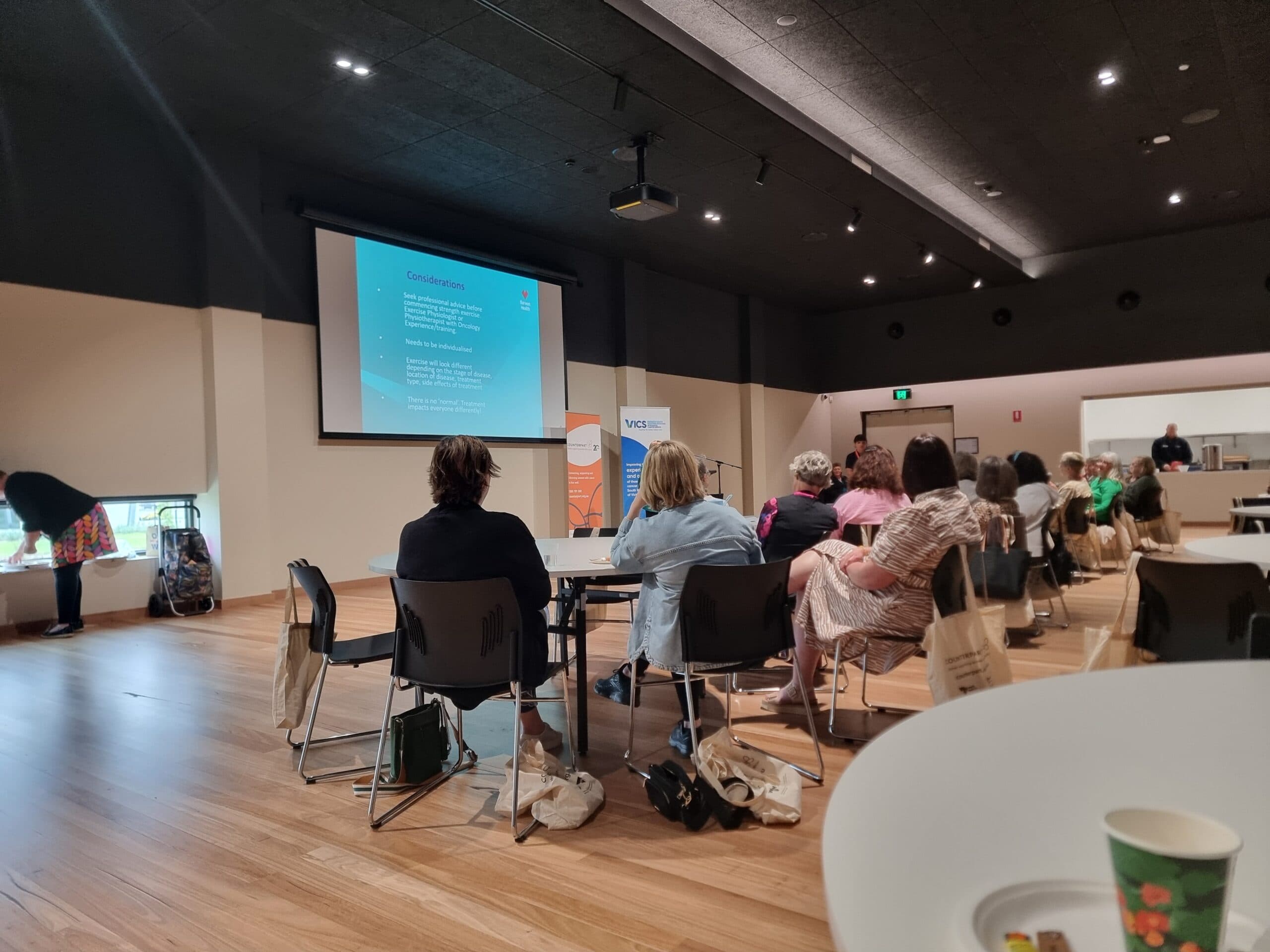 The activities were engaging, fun and informative including a creative activity led by local artist Trish Woodward, exercise and cancer info session presented by local Physiotherapists Sarah Huntly and a gentle chair based Yoga guided by Monica from Yoga 4 Living.