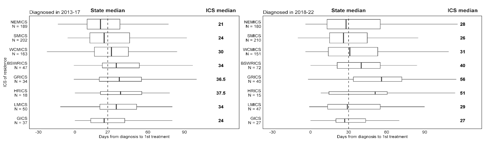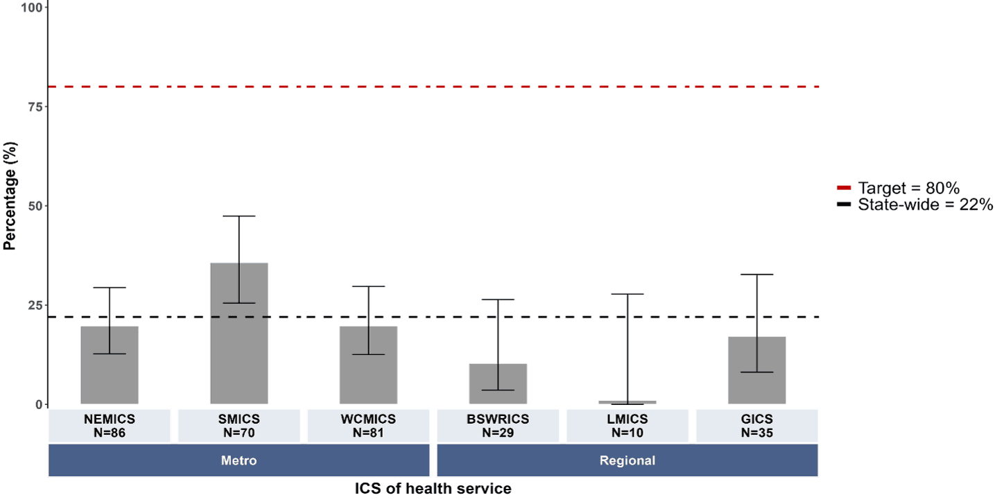 We found some improvements, particularly in treatment, between the 2 periods. However, on 23 measures, patterns of care or outcomes in some or all of Victoria still fall short of optimal care and/or have become worse since 2013–2017.