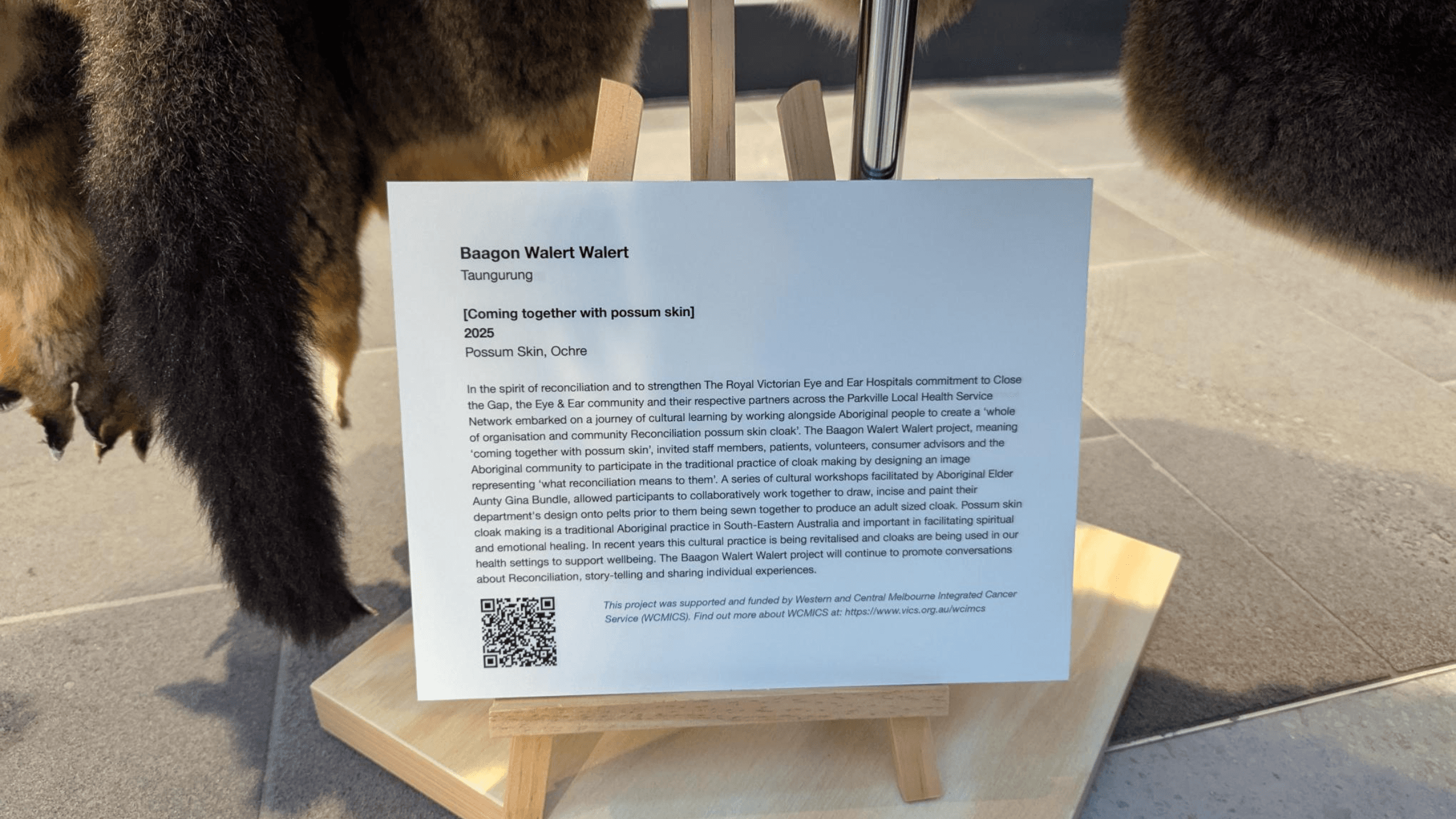 WCMICS is proud to support initiatives that embed cultural safety, amplify Aboriginal voices, and strengthen healing across our healthcare system. The Baagon Walert Walert cloak will remain a lasting symbol of truth-telling, collaboration, and the enduring presence of First Nations culture and knowledge within our shared spaces.