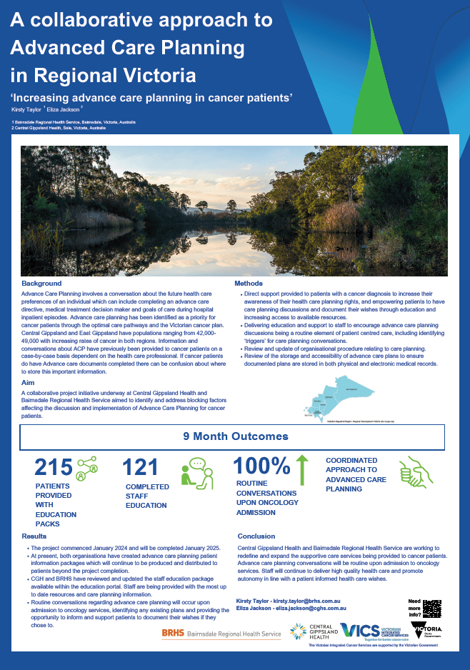 Central Gippsland Health and Bairnsdale Regional Health Service – Advance Care Planning – A collaborative approach to advance care planning in regional Victoria.